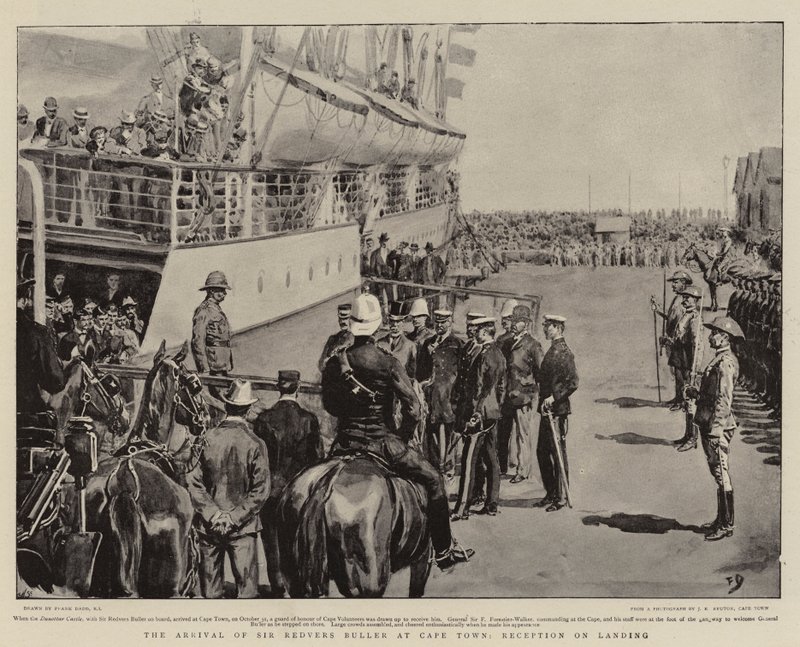 arrival · sir redvers buller · cape town · reception · landing · military · south africa · boer war · Private Collection / Bridgeman Images · / Look and Learn |