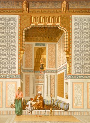 decoration · decorated · decorative · ornate · ornamental · hookah · nargileh · shisha · waterpipe · tobacco · smoking addiction · tobacco packet · interior · religious · ornate · learning · egyptian · figures · education · egypt · pattern · architecture · patterned · instruction · islamic · architectural · mosques · teaching · muslim · religion · islam · moslem · turban · Private Collection / Bridgeman Images