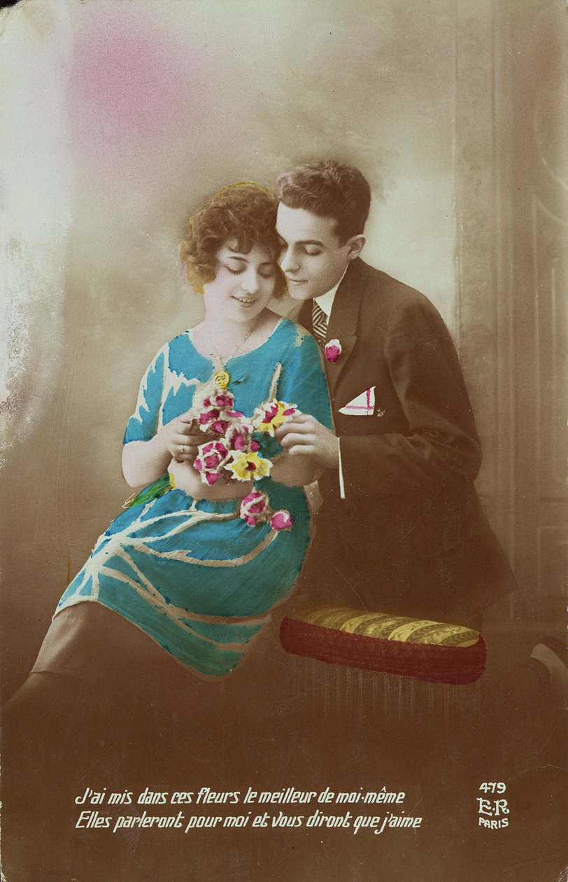 postcard · lovers · bunch · female · male · romantic · romance · love · lover · Private Collection / Bridgeman Images |
