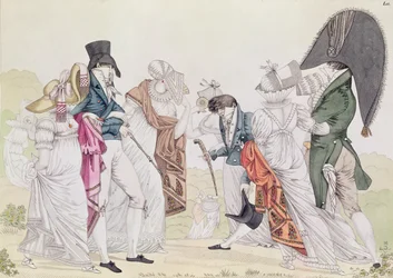 (English costumes, illustration from Le Bon Genre, early 19th century (colour engraving))