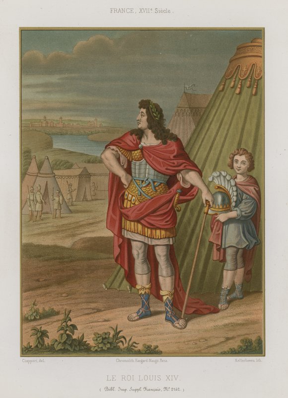les arts somptuaires · histoire du costume · lamueublement · middle · ages · medieval · king louis xiv of france · le roi louis xiv · louis xiv · kings · royalty · monarchs · armour · fashions · clothing · full-length · children · people · men · century · Private Collection / Bridgeman Images · / Look and Learn |