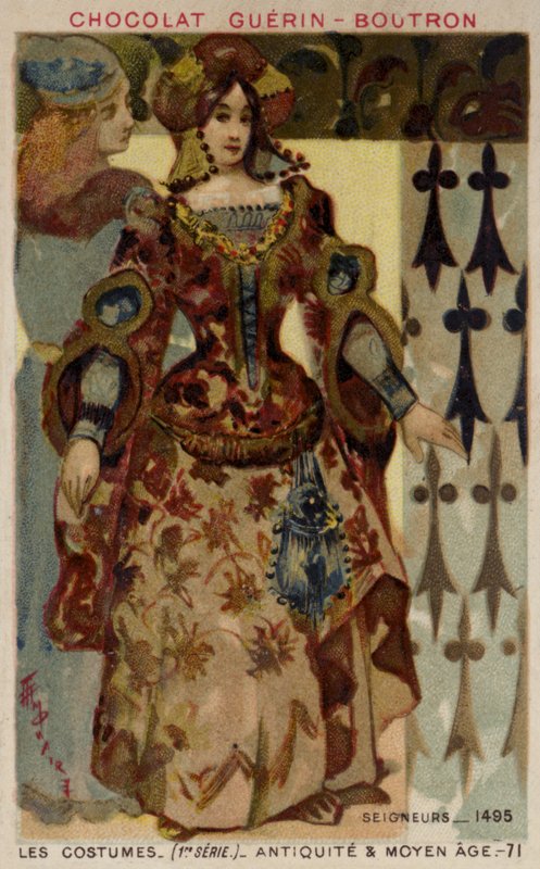 lord · costume · women · lady · chocolat guerin-boutron · noblewoman · clothes · middle ages · medieval · 15th century · woman · nobility · dress · nobleman · fashion · Private Collection / Bridgeman Images · / Look and Learn |