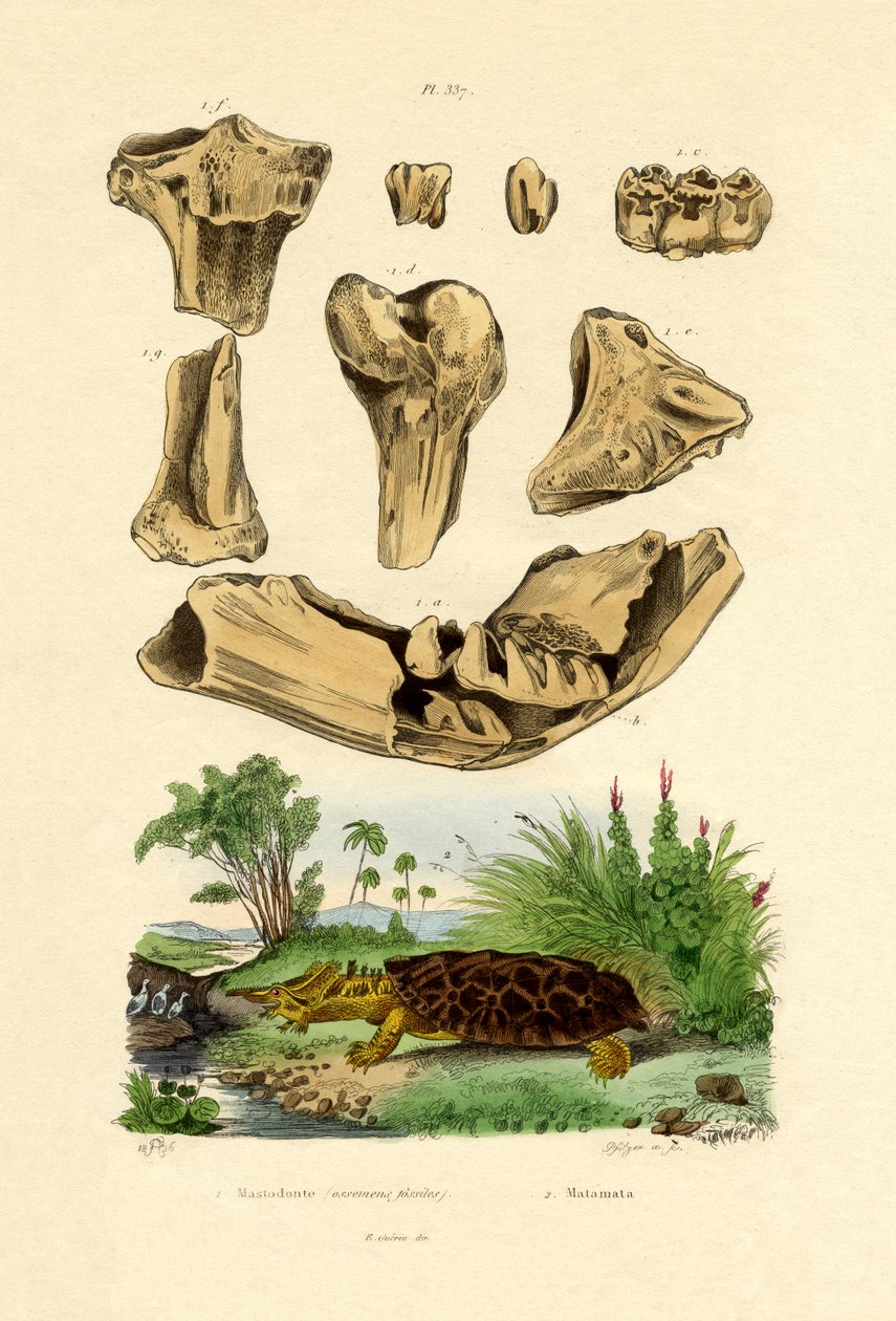 reptiles · animals · bone fossils · matamata turtle · tortoises · turtles · illustration · Private Collection / Bridgeman Images