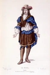 Corneille, La Veuve, Act III, Scene III(Corneille, La Veuve, Act III, Sc III (coloured engraving))French School |