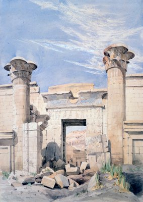 building · buildings · religious · architecture · stone · country · egypt · religion · temple · color · colour · egyptian · archaeology · column · pillar · pillars · entrance · location · century · archaeological site · archeology · ancient egyptian · ancient egypt · new kingdom · art media · 12th century bc · 20th dynasty · ancient site · watercolour · rameses iii · ramses iii · ramesses iii · gf weston · weston · canon gf weston · weston · canon · canon weston · Art Media/Heritage Images