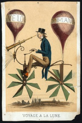 19th century · aviation · bicycle · cycling · sport · moon · engraving · anticipation · human · aviation · bicycle · future · binoculars · heaven · casual · engraving · mzengraving · Bibliotheque Historique de la Ville de Paris, Paris, France / Bridgeman Images