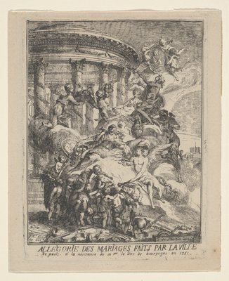 Allegory of Marriages Made by the City of Paris at the Birth of the Duke of Burgundy(Allegorie des Mariages Faits par la Ville de Paris a la Naissance du Duc de Bourgogne)Gabriel Jacques de Saint Aubin |