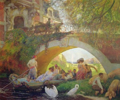 barge · bridge · pigs · swan · punting · the prodigal son · child · Musee des Beaux-Arts, Tourcoing, France / Bridgeman Images