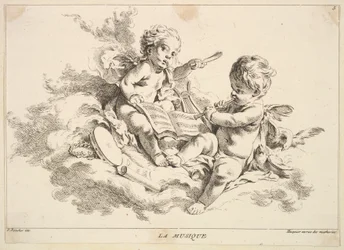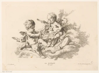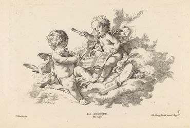Music (series title: Book of Arts)(Muziek La Musique (title on object) Livre des Arts (series title))Georg Leopold Hertel(print maker),François Boucher(after design by),Johann Georg Hertel (I)(publisher) |