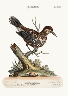 Watercolour illustration from a book of rare birds by G Edwards 1750(Watercolour illustration from a book of rare birds by G Edwards 1750. George Edwards (1694-1773) was a British naturalist and ornithologist. He travelled extensively through Europe, studying natural history and birds in particular. He gained some recognit)George Edwards |