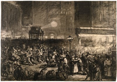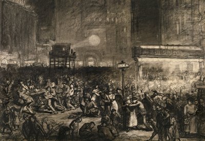 1900s · 20th century · a lot of people · fight · disorder · drawing · election · north america · america (continent) · crowd · lantern · lighting · night · politics · lamppost · cityscape · external view (building) · new york (city) · new york (state) · black and white · american realism · art movement · outside · city · mzdrawing · bellows george (1882-1925) · painter · artist · ashcan school · campaign · · / Bridgeman Images