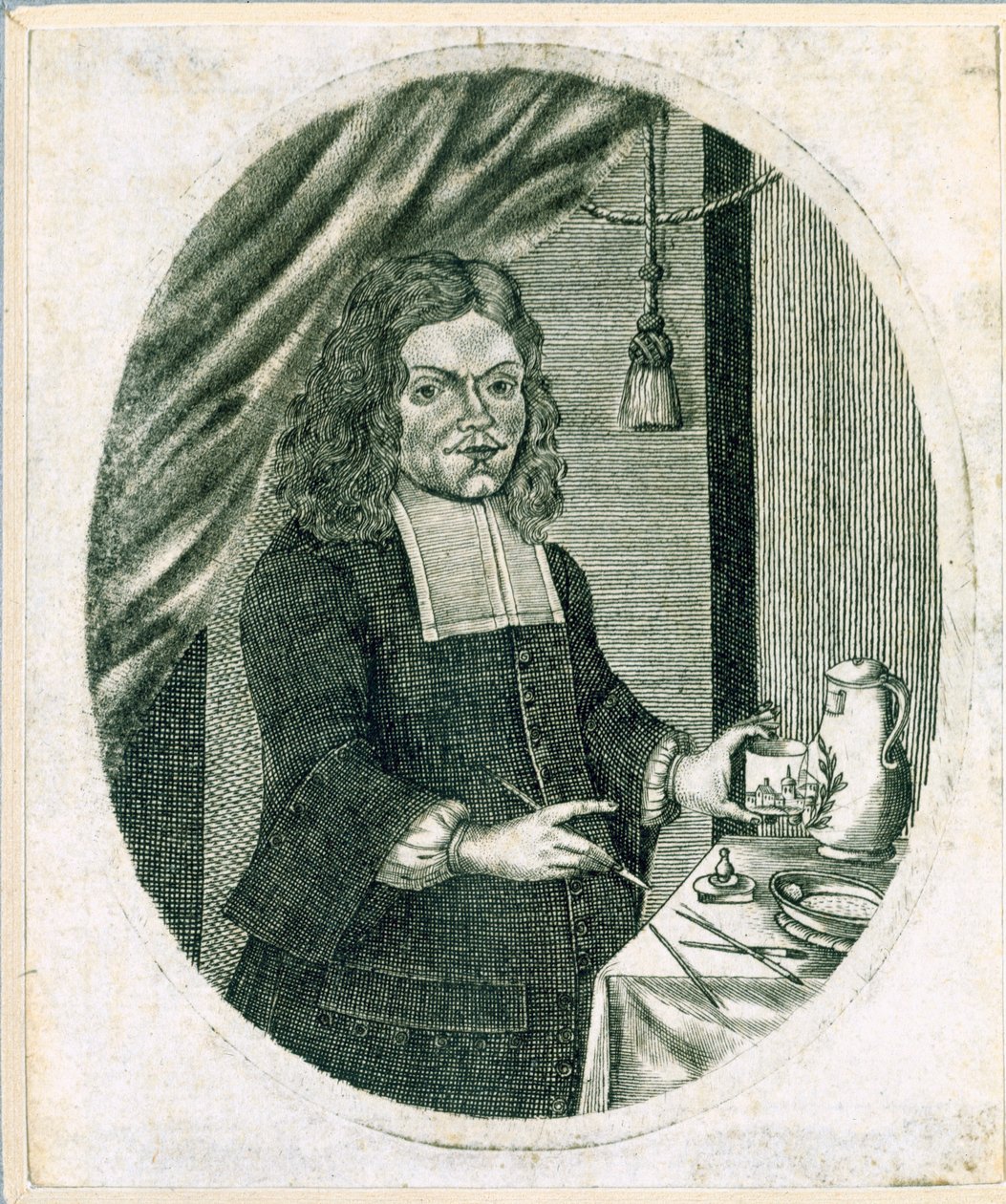 trade · artist · painting · workshop · studio · paints · paintbrush · working · male · Private Collection / Bridgeman Images |