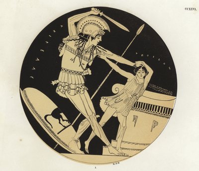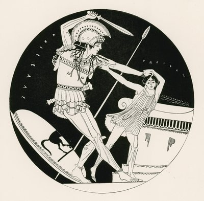 achaeans · achilles · ancient · world · battle · battles · classical · courtly love · death · troilus · epic · fine · arts · greece · greek · greeks · hero · heroes · historical · history · male · beauty · mythology · myths · painting · pots · pottery · prince · princes · shield · soldier · soldiers · spear · spears · stories · story · sword · trojan · trojans · vase · vases · warrior · warriors · young · youth · Private Collection / Bridgeman Images · / Look and Learn