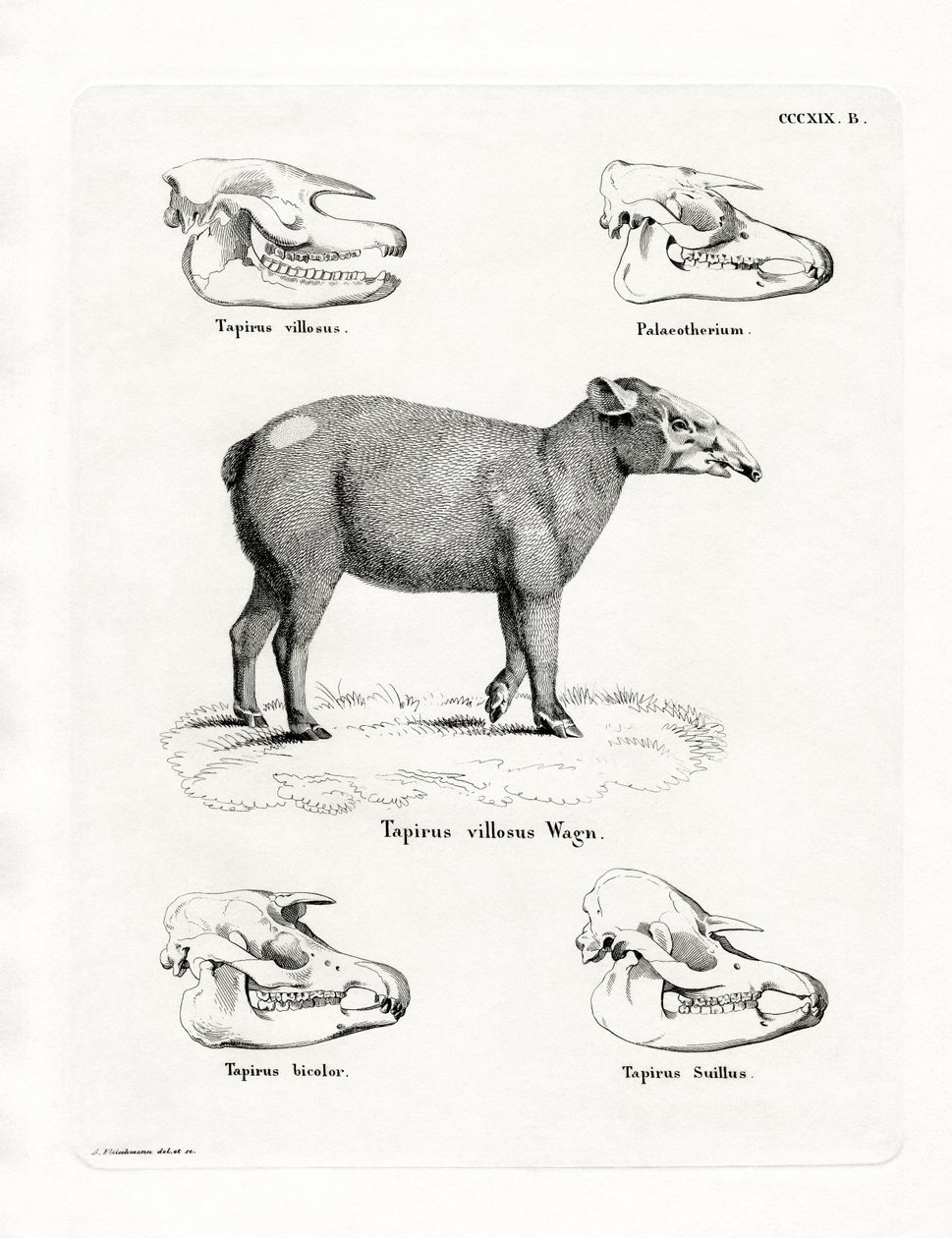 Tapir Skulls(Tapir Skulls (coloured engraving))German School |