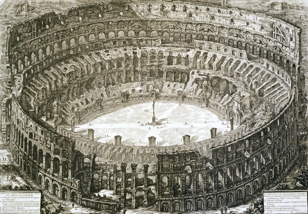 Aerial view of the Colosseum in Rome from 'Views of Rome', first published in 1756, printed Paris 1800(Aerial view of the Colosseum in Rome from 'Views of Rome', first published in 1756, printed Paris 1800 )Giovanni-Battista Piranesi |
