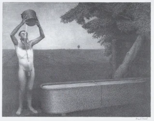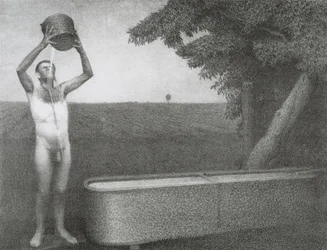 troughs · night · nudes · landscape · bucket · warm · trough · cold · buckets · north america · sultry · naked · outdoors · pails · cool · water · refreshing · american · america · male · cooling off · landscapes · nude · pail · usa · Museum of Fine Arts, Houston, Texas, USA / Bridgeman Images