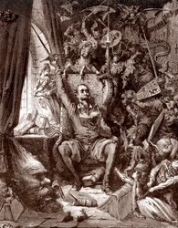 Don Quixote in his Library, engraved by Heliodore Joseph Pisan c.1868(Don Quixote in his Library, engraved by Heliodore Joseph Pisan (1822-90) c.1868 )Gustave Dore |