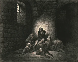The Divine Comedy, Inferno, Canto 33: Ugolino and his sons immured and starving (Illustration by Gustave Dore)(The Divine Comedy (La Divina Commedia, La Divine Comedie), Inferno, Canto 33: Ugolino and his sons immured and starving - by Dante Alighieri (1265-1321) - Illustration by Gustave Dore (1832-1883))Gustave Dore |