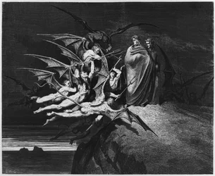 The Divine Comedy, Inferno, Canto 9: The hideous Erinyes: Megaera, Tisphone, Alecto - Illustration by Gustave Dore (1832-1883) Mark Thou Each Dire Erynnis Virgil, Dante and the Erinyes, illustration from Inferno, Canto 21: The Demons Threaten Virgil, Illustration from Illustration for Milton Illustration for Milton L The Divine Comedy, Purgatorio, Canto 11: The Souls of the Prideful, Bearing Heavy Stones - by Dante Alighieri (1265-1321) - Illustration by Gustave Dore (1832-1883) The Divine Comedy, Inferno, Canto 23: The poets escape the demons of the fifth bolgia - Illustration by Gustave Dore The Divine Comedy, Purgatorio, Canto 25: Virgil and Dante ascend to the seventh circle through flames - by Dante Alighieri - Illustration by Gustave Dore The War in Heaven, from Book VI of The Divine Comedy, Inferno, Canto 7: Virgil shows Dante the souls of the wrathful in the Styx - by Dante Alighieri - Illustration by Gustave Dore Inferno, Canto 9: The hideous Erinyes: Megaera, Tisiphone, Alecto The Divine Comedy, Purgatorio, Canto 25: The lustful pass through fire in the seventh circle - by Dante Alighieri - Illustration by Gustave Doré The lost paradise: the fallen angels. From the drawing of Gustave Dore illustrating Devils, illustration from The Divine Comedy, Inferno, Canto 5: The Soul of Francesca Speaks to Dante - by Dante Alighieri (1265-1321) - Illustration by Gustave Dore (1832-1883) The Coronation of the Virgin The Divine Comedy, Inferno, Canto 22: Alichino and Calcabrina grapple above the pitch - by Dante Alighieri - Illustration by Gustave Dore The Divine Comedy, Inferno, Canto 25: Agnello transforming into a serpent (Illustration by Gustave Dore) Love brought us to one death: Caina waits the soul, who split our life Engraving by Gustave Dore for Inferno by Dante Alighieri Canto XV lines 28 and 29 The Divine Comedy by Dante Alighieri Illustrated by Gustave Dore The Divine Comedy, Inferno, Canto 15: Brunetto Latini accosts Dante - Illustration by Gustave Dore