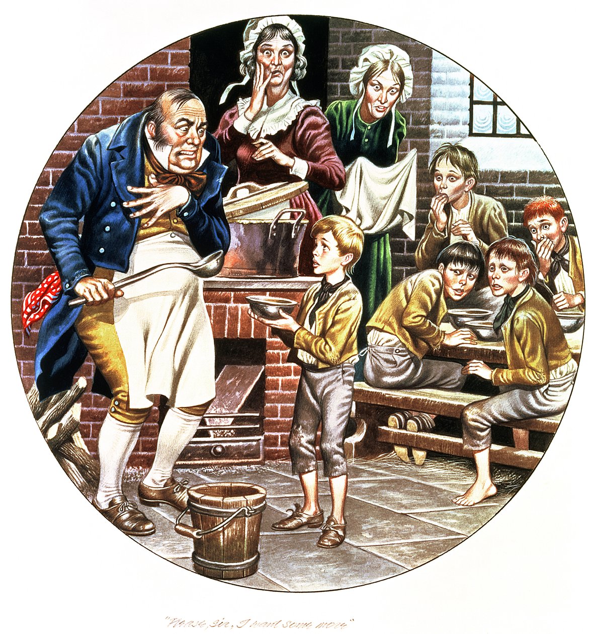 (The artist's second interpretation of Oliver Twist asking for more, from the 'World of Charles Dickens' later made as a Spode plate )