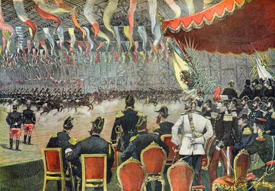 19th century · cavalry · colour · decoration · military parade · army · diplomacy · flag · celebration · france · europe · paris · russia · spectator · illustration · military officer · / Bridgeman Images