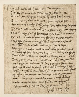 Facsimile of a Letter from Henry VIII to Cardinal Wolsey dated July 1518, pub. 1902(Facsimile of a letter from Henry VIII to Cardinal Wolsey dated July 1518, pub. 1902 (collotype))Henry VIII |