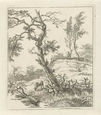 Landscape with Shepherd on Hill(Landschap met schaapsherder op heuvel)Hermanus Fock(print maker) |