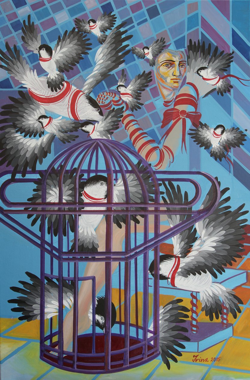 birds · contemporary · cage · feather · flock · waiting · chickadees · feathers · flocks · caged · cages · ribbons · ribbon · bird · paintings · painting · chickadee · Private Collection / Bridgeman Images |