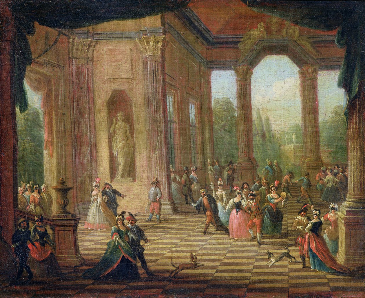 masquerade · society life · scene de bal masque · dancing · dance · Musee de l'Hotel Sandelin, Saint-Omer, France / Bridgeman Images