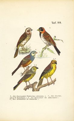 Various Bunting Species by J. W. Tenhaeff. Available as an art print on canvas, photo paper, watercolor board, uncoated paper or Japanese paper.