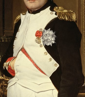 18th century · 19th century · colour · emperor · france · europe · history · medal · napoleon i (1769-1821) · bonaparte family · palace · paris · painting · portrait · king · royalty · tuileries · one person · uniform · clothes · military uniform · army · soldier · leader · oil painting · david jacques-louis (1748-1825) · painter · artist · neoclassicism · art movement · mzpainting · interior · detail (artwork) · · National Gallery of Art, Washington DC, USA / Bridgeman Images