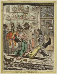 Very Slippy Weather, engraved by J. Sidebotham by James Gillray