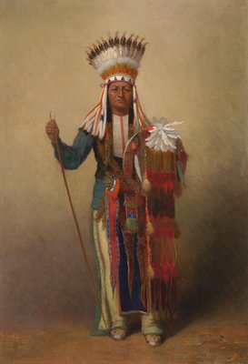 19th century · north america · america (continent) · shield · weapon · colour · native american · native · painting · feather · portrait · one person · oil painting · traditional costume · clothes · · National Portrait Gallery, Smithsonian Institution, USA / Bridgeman Images