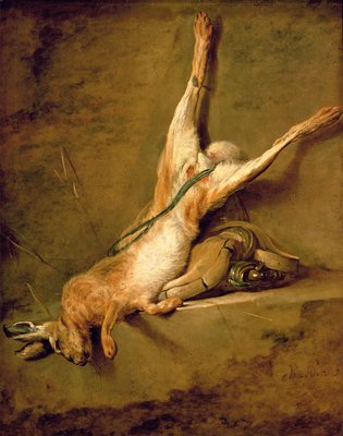 Dead Hare with Powder Horn and Gamebag(Dead hare with powder horn and gamebag, c.1726-30 )Jean-Baptiste Simeon Chardin |