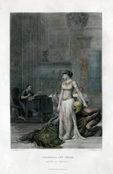 Cleopatra before Julius Caesar in Shakespeare's play, Antony and Cleopatra, after the painting by Jean Leon Gerome