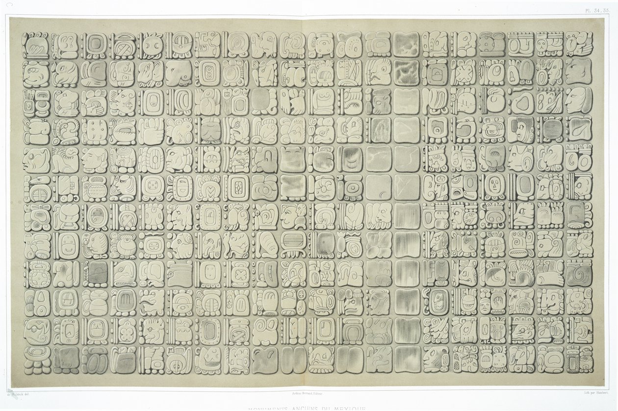 Large Plaque with Ideographic Writing from the Temple of Inscriptions, Palenque, c.692, plates 34 and 35 from 'Ancient Monuments of Mexico', engraved Humbert, 1866(Large plaque with ideographic writing from the Temple of Inscriptions, Palenque, c.692, plates 34 and 35 from 'Ancient Monuments of Mexico', engraved Humbert, 1866 )Johann Friedrich Maximilian von Waldeck |