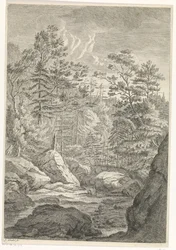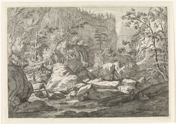 Ravine with Trees and a Stream (Landscapes in the Chartreuse Mountains)(Ravijn met bomen en een beekje Landschappen in het Chartreuzer-gebergte (series title))Johannes Glauber(print maker),Johannes Glauber(publisher) |