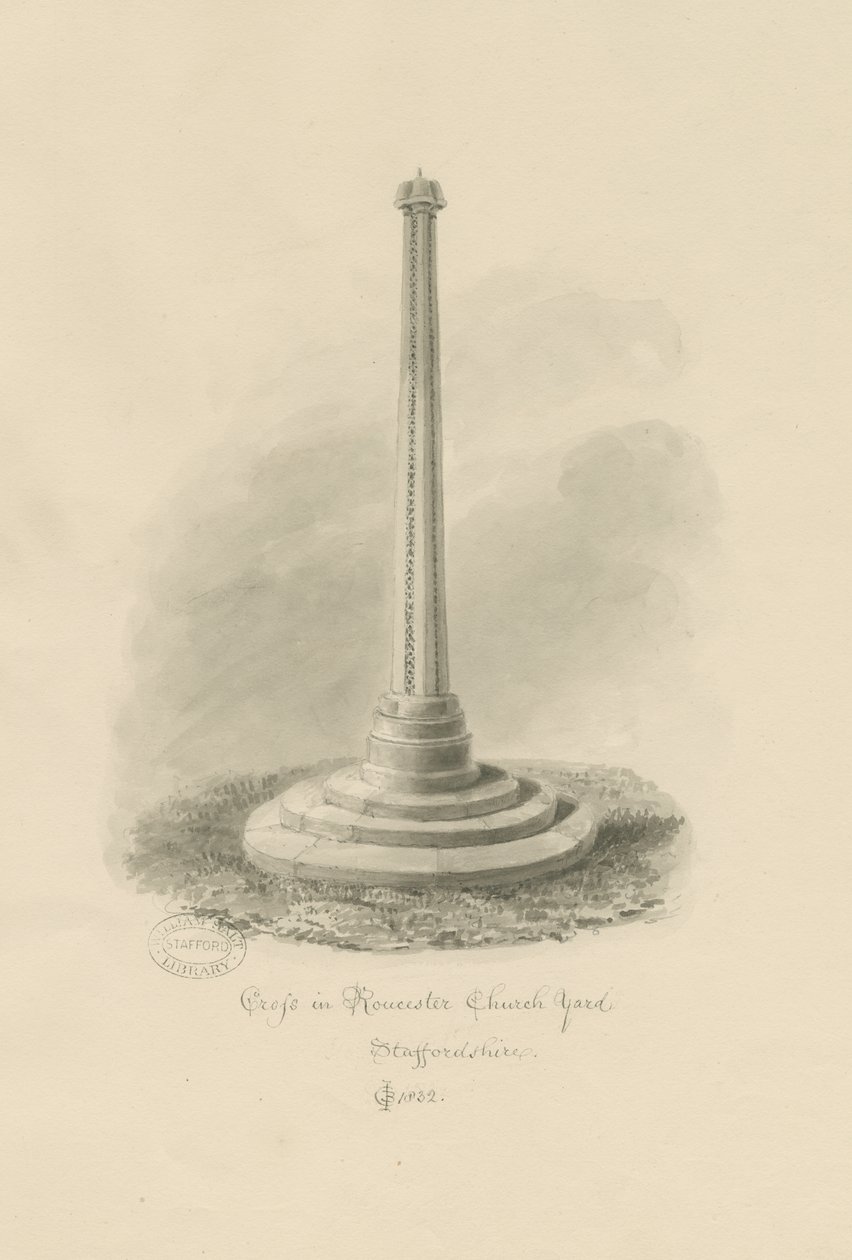 Rocester Churchyard - Cross: sepia drawingJohn Chessell Buckler |