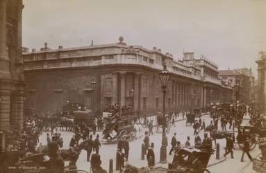 transport · transportation · exterior · city · road · building · buildings · london · england · people · architecture · street · bank · finance · british · lane · lighting · avenue · lamppost · location · victorian · century · bank of england · city of london · britain · outside · barrel · barrels · monochrome · road transport · 19th century · black white · black and white · nineteenth century · horse-drawn vehicle · streetlighting · photograph · landscape · john l stoddard · werner company · stoddard · john l · stoddard · john l john lawson · stoddard · john lawson · The Print Collector/Heritage Images