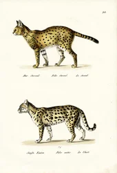 Cheetah Panther, Jaguar and Puma Caracal Natural History Plate: Zoological board representing 1. The Leopard and 2. The Jaguar - in South American Animals Wild Cats of the Genus Felis (Plate IV) Serval and Lynx Natural history board: Zoological board representing 1. The Pangolin and 2. The Snow Leopard - in Clouded Leopard, 1824 Civet Grey Fox, 1824 Rare four-footed animals Senegal Cheetah Mongoose, Genet and Civet Spotted Hyaena, 1824 Jackal and Spotted Hyena Leopard, 1824 Ocelot, Cheetah and Cheetah Hunting African Civet Mongoose Male Leopard Biting animals Jaguar, 1824 Big Cats and Small Feline Species Predators from all parts of the world South American animals Wild Animals Male Leopard