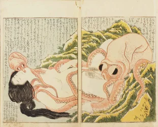 The painting "The Dream of the Fisherman's Wife" by Japanese artist Katsushika Hokusai was first published in 1814 as a wood-panel print. The picture is from the collection "Kinoe no Komatsu", which was published in three parts. It is the erotic Japanese art form "Shunga" and is probably the most famous work of the artist Hokusai. The painting shows a naked woman who can be satisfied by two squid. Many other artists such as Félicien Rops, Auguste Rodin, Louis Aucoc, even Pablo Picasso were influenced by the work of Katsushika Hokusai. Pablo Picasso painted his own version of the picture in 1903, which was exhibited next to the original in Japan. The image is often referred to as the pioneer of the so-called "tentacle erotica", which is used in modern Japanese society since the late 20th century, often in anime or manga as a motif.