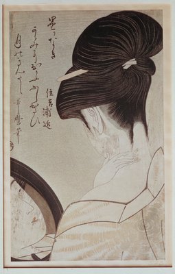 femme se fardant · applying · mirror · female · cream · making herself up · vanity · geisha · japan · japanese · ukiyoe · floating world · kagami · ukiyo-e · Musee Guimet, Paris, France / Bridgeman Images