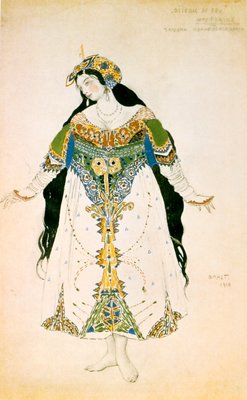 The Tsarevna, Costume Design for the Ballets Russes Production of Stravinsky's The Firebird(The Tsarevna, costume design for the Ballets Russes production of Stravinskys The Firebird, 1910)Leon Bakst |