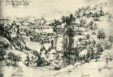 Landscape of Santa Maria della Neve: The Landscape of the Arno Valley(Landscape of Santa Maria della Neve: the landscape of the Arno Valley (pencil drawing)Leonardo da Vinci |