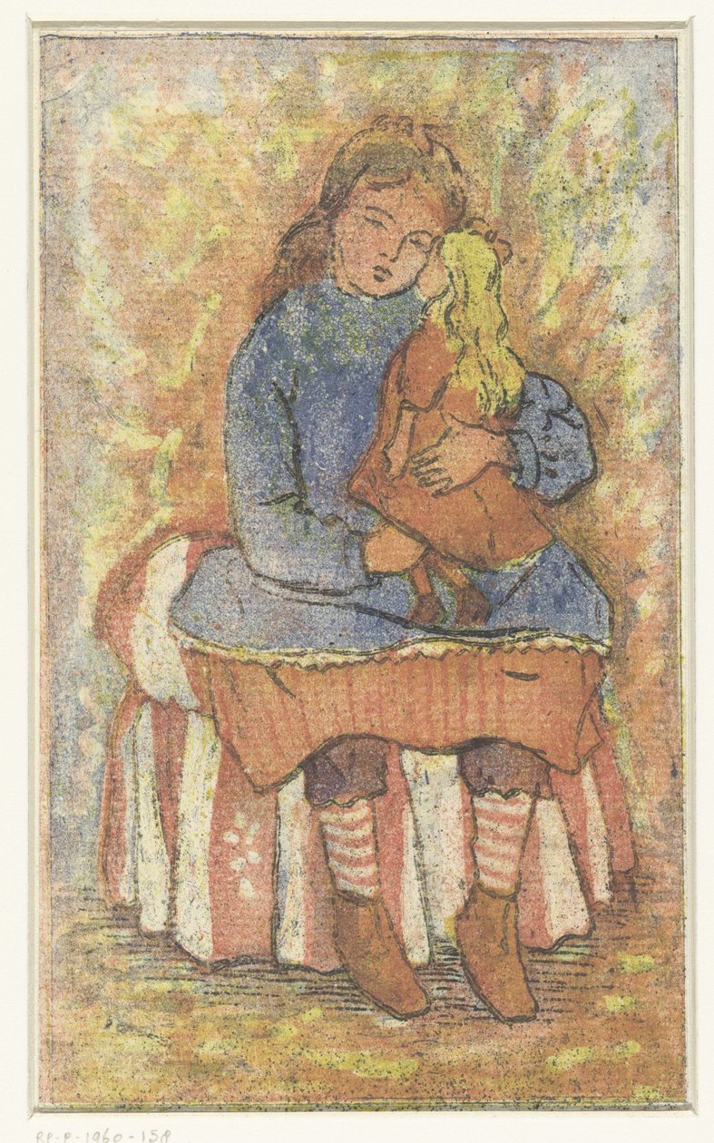 Girl with Doll(Meisje met pop)Lucien Pissarro(print maker) |