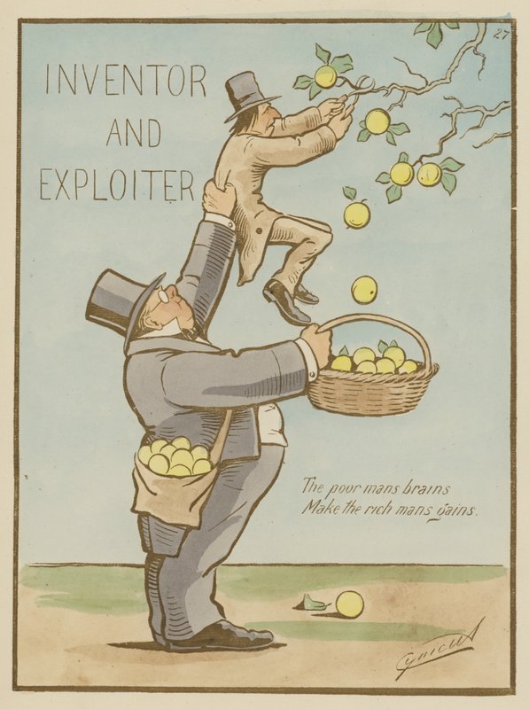 cartoon · cartoons · social · society · political · politics · cynical · critical · satire · satirical · inventor · exploiter · poor · brains · rich · gains · Private Collection / Bridgeman Images · / Look and Learn |