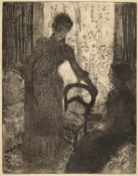 female · women · woman · people · interior · arts · country · washington · location · century · inside · guest · print · impressionist · engraving · united states of america · 19th century · indoors · black white · black and white · national gallery of art · impressionism · nineteenth century · american · america · aquatint · etching · post impressionism · post impressionist · post-impressionism · post-impressionist · united states · mary cassatt · mary stevenson cassatt · cassatt · mary · heritage art · drypoint · softground etching · aquatint · and drypoint in black on laid paper · Heritage Art/Heritage Images