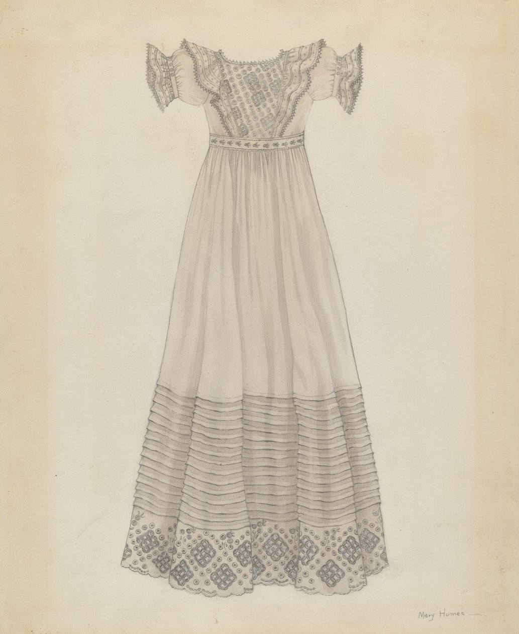 Infant's Dress, c. 1936 by Mary E Humes. Available as an art print on canvas, photo paper, watercolor board, uncoated paper or Japanese paper.