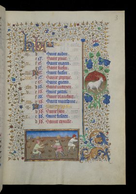 15th century · calendar · colour · illumination (manuscript) · july · month · book of hours · manuscript · middle ages · Keble College, Oxford, UK / Bridgeman Images