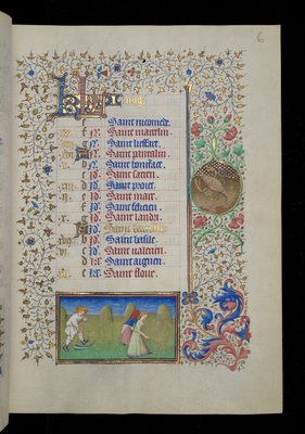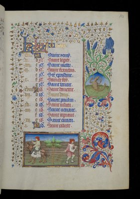 15th century · calendar · colour · illumination (manuscript) · february · month · book of hours · manuscript · middle ages · Keble College, Oxford, UK / Bridgeman Images